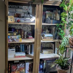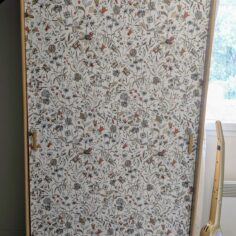 Armoire en toc, la customisation la plus simple du monde : J’ai collé du papier peint sur les portes ! Je voulais qu’elle doit visuellement moins « mastoc »