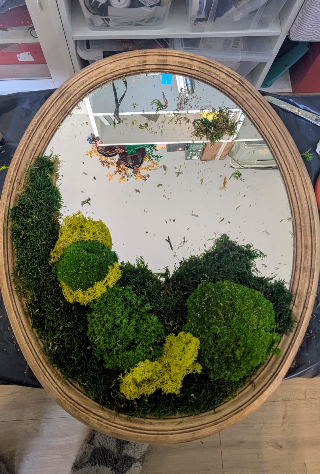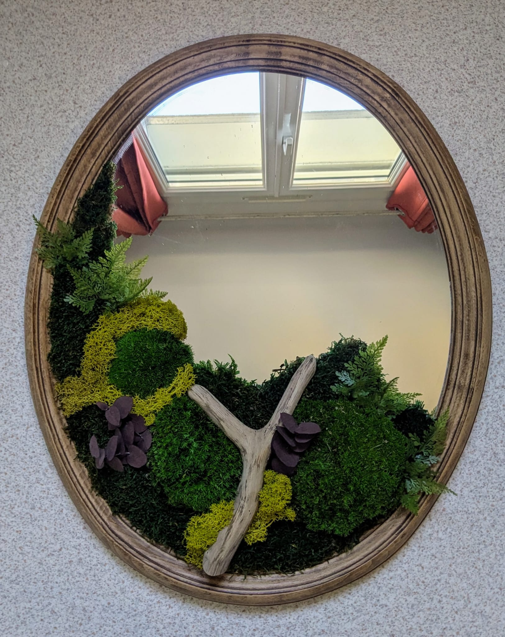 Un en mode végétal dont j’ai poncé le cadre puis sur lequel j’ai collé des végétaux stabilisés à la colle chaude, au fil de mon inspiration.